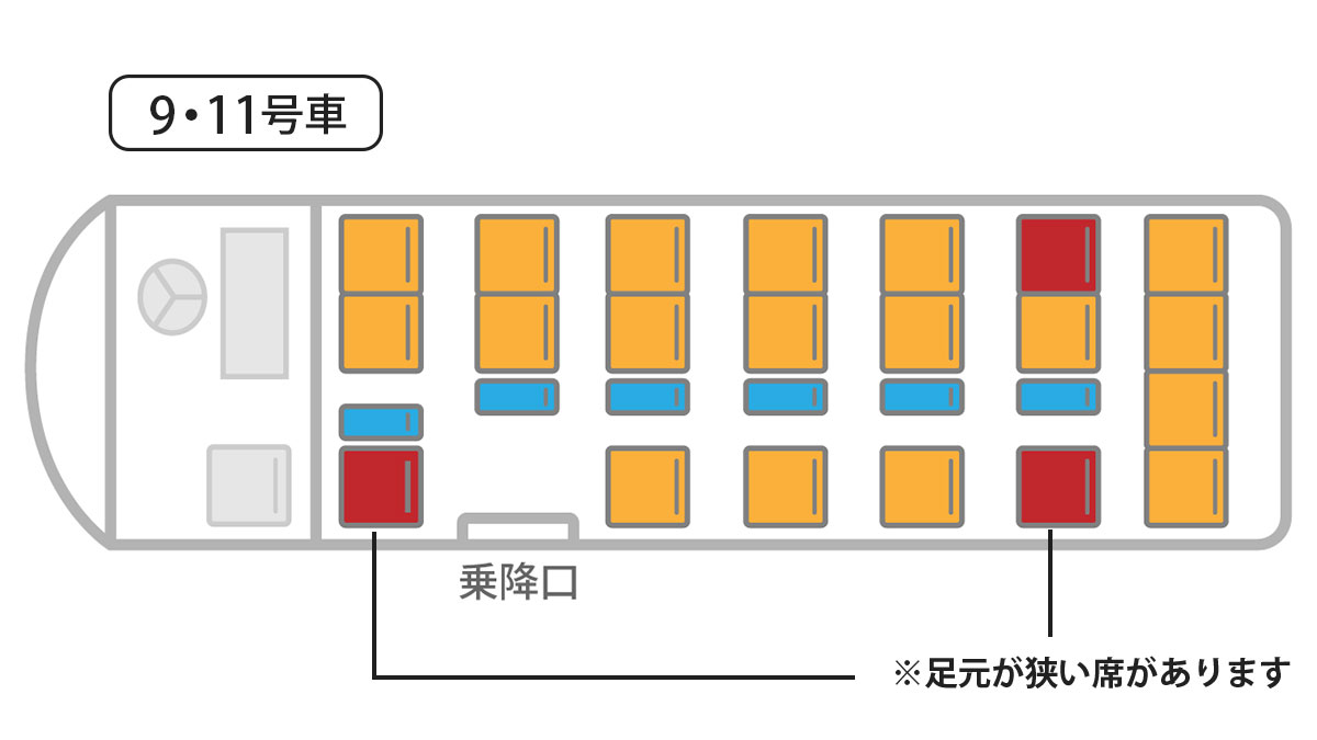 高速バスで人気の足元広々縦10列の40人乗りのバスも指定可能です。